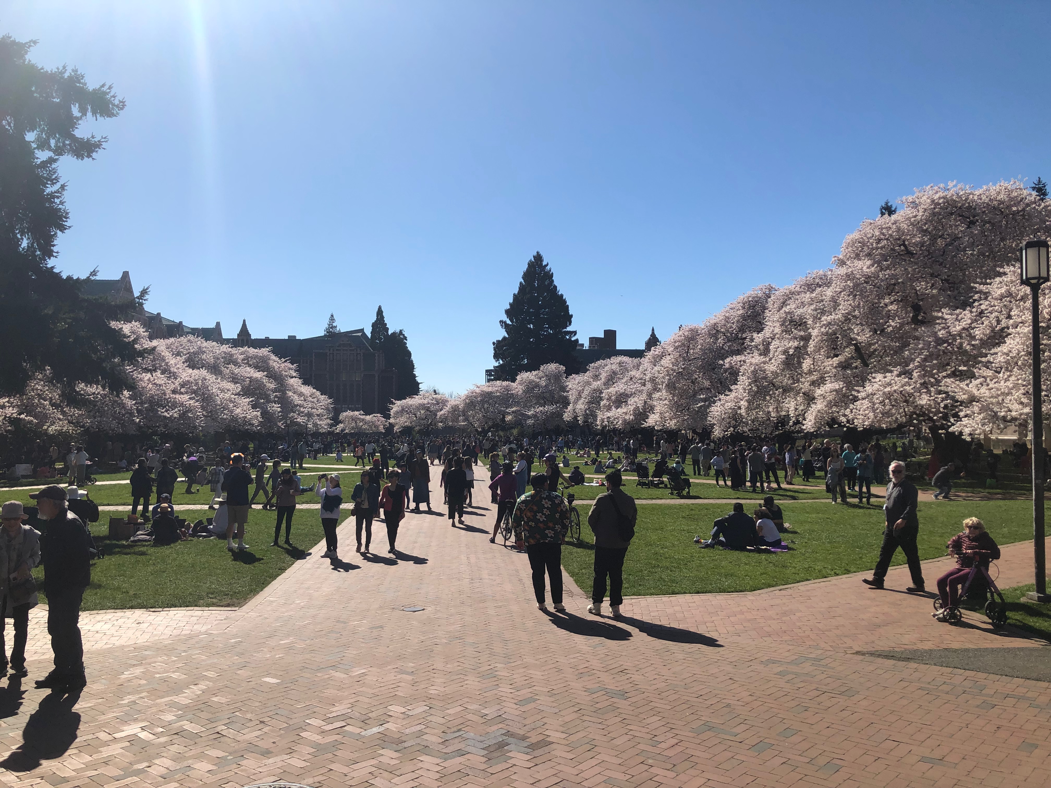 PhotosPeekaboo!A view of Mt. Rainier from my apartment.The sakura trees lining the UW quad blossom every year around March.I was lucky enough to see them in bloom the very first time I visited campus!